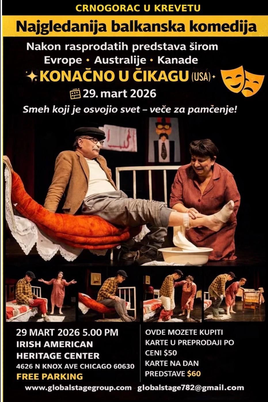 Ako u vašem gradu postoji interesovanje publike i prostor gde možemo da ugostimo hit komediju „Crnogorac u Krevetu“, koja na američku turneju stiže tokom marta i aprila 2026. godine, javite nam se!