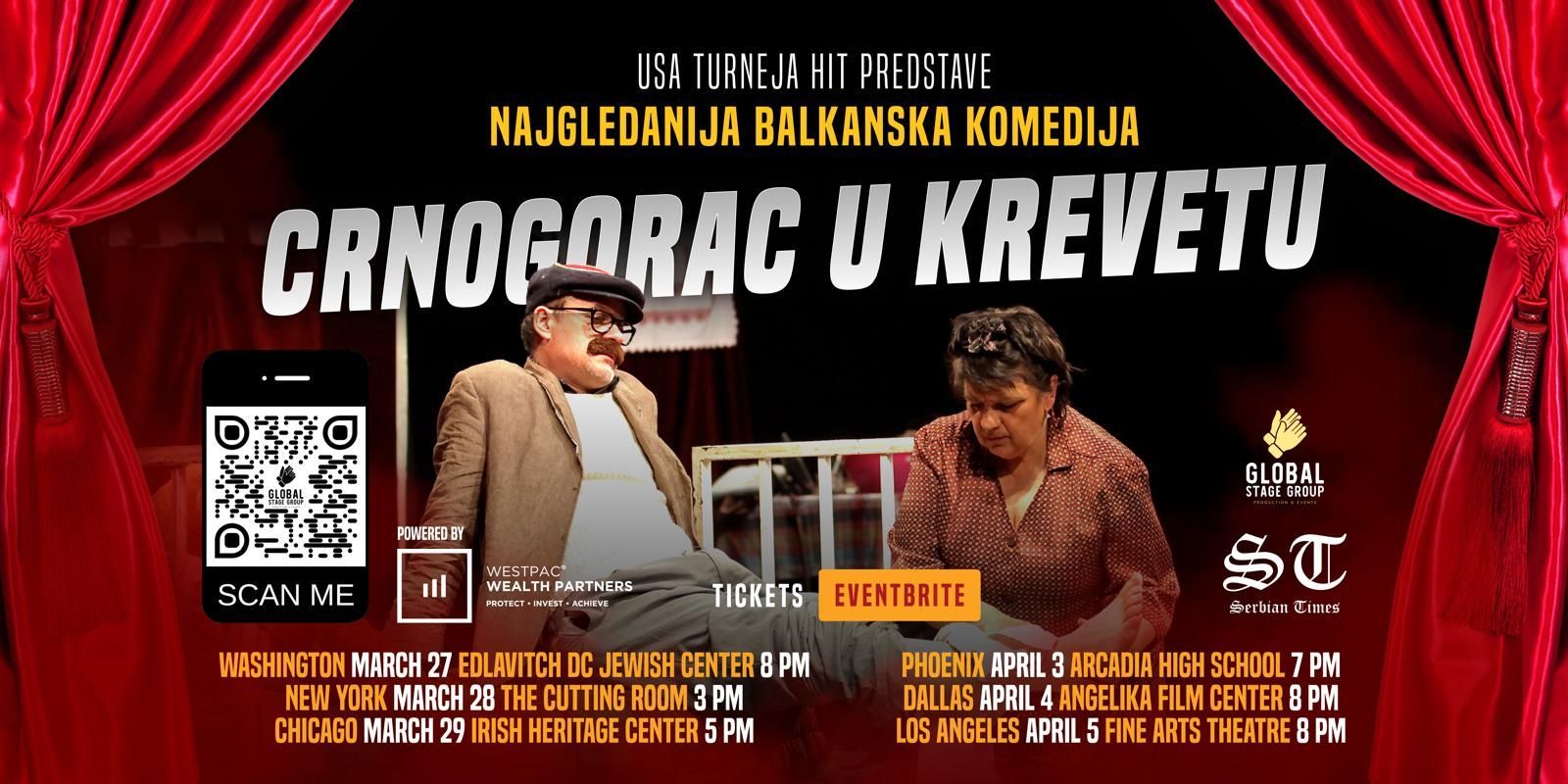 After record-breaking attendance in Montenegro, Serbia, Bosnia and Herzegovina, Croatia, across Europe, and Australia, this play has been proclaimed the most-watched comedy of the past decade.
